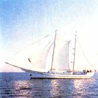 Стаксельная шхуна. На стаксельной шхуне передние паруса и стаксели ставят перед мачтами. Грот-мачта, установленная ближе к корме, несет иногда грот. |