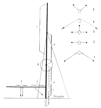 так и поперечный изгиб верхней части мачты. Недостатком этой системы