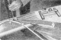Рис. 6. Это приспособление имеет большое значение для коротких швертботов, таких, как "5-0-5". Оно помогает им лучше идти на встречных курсах. С помощью этого приспособления шверт автоматически может встать под углом в 2-3 градуса на ветер относительно осевой линии судна, что помогает корпусу идти прямо, а не вбок. |